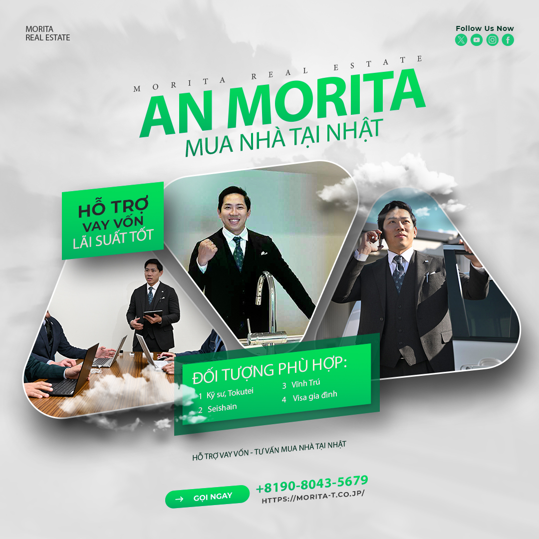 - Tư Vấn Về Tài Chính và Cho Vay Chúng tôi cung cấp dịch vụ tư vấn về các phương án tài chính, bao gồm việc hỗ trợ xin vay vốn từ ngân hàng Nhật Bản (nếu cần). Chúng tôi cũng sẽ giúp bạn hiểu rõ các loại thuế, phí chuyển nhượng và các khoản chi phí liên quan khi mua hoặc bán nhà tại Nhật.